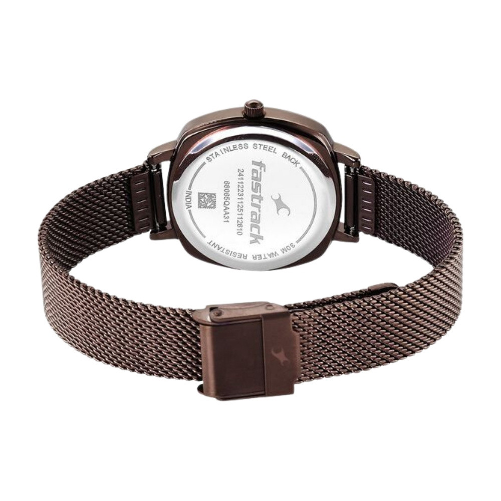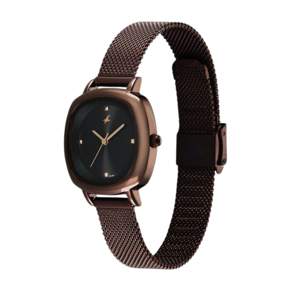 Fastrack Stunners Quartz Analog Black Dial Brown Stainless Steel Strap Watch For Girls 68065QM02