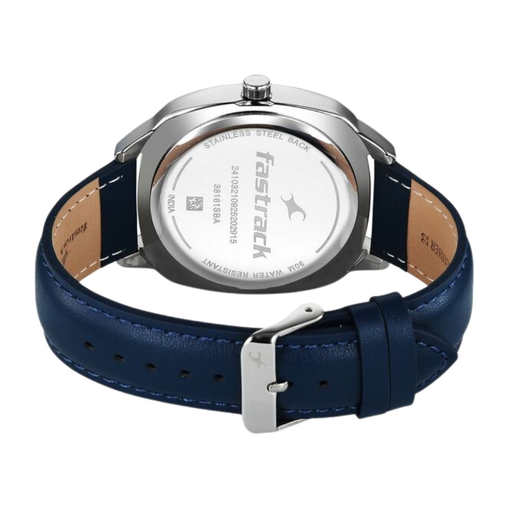 Fastrack Stunners Quartz Analog Blue Dial Blue Leather Strap Watch For Guys 38161SL02