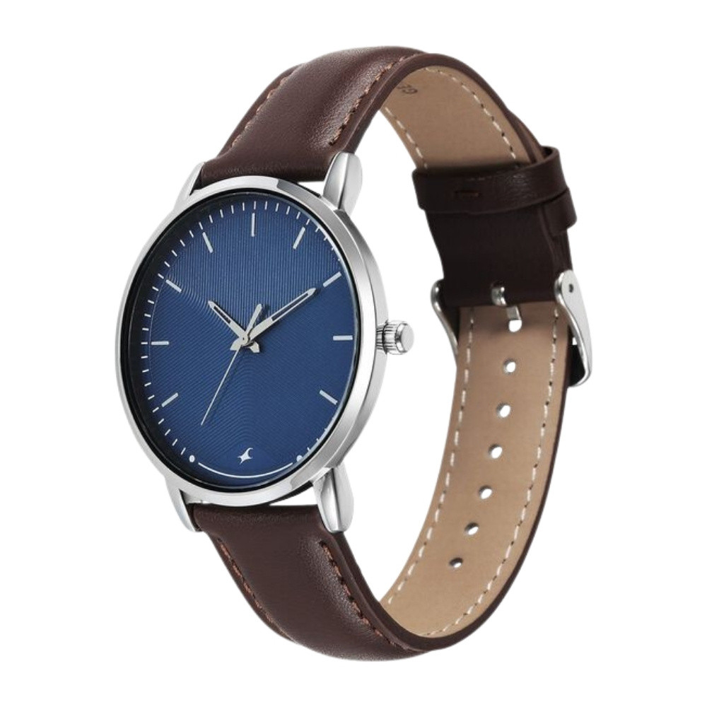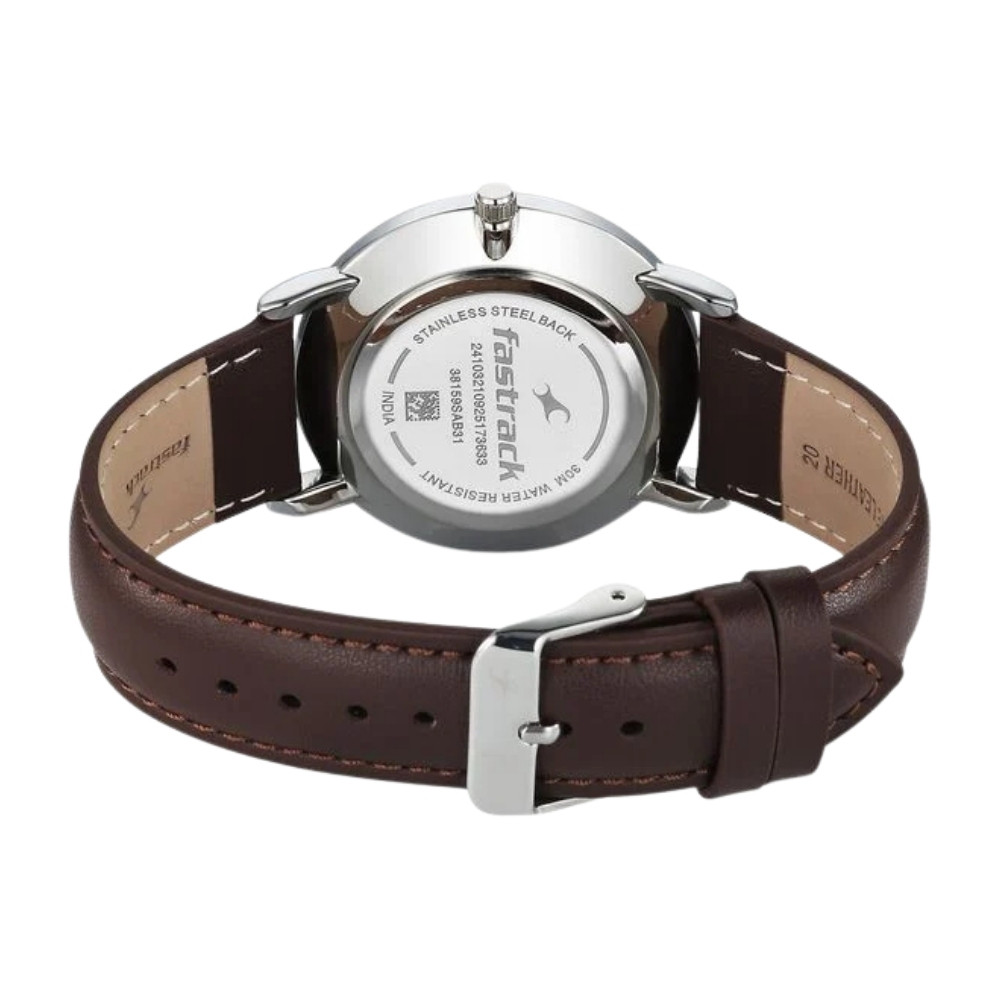 Fastrack Stunners Quartz Analog Blue Dial Brown Leather Strap Watch For Guys 38159SL02