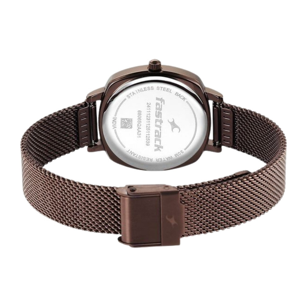 Fastrack Stunners Quartz Analog Brown Dial Brown Stainless Steel Strap Watch For Girls 68065QM01