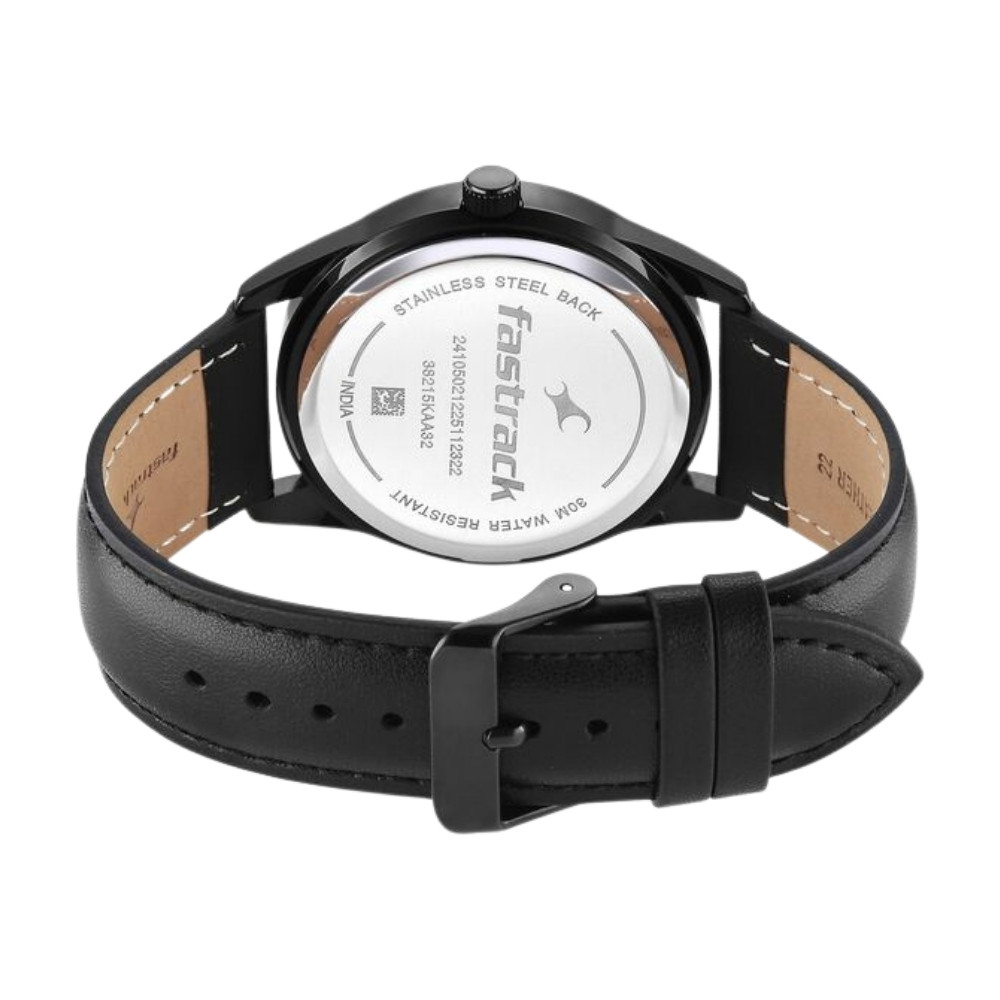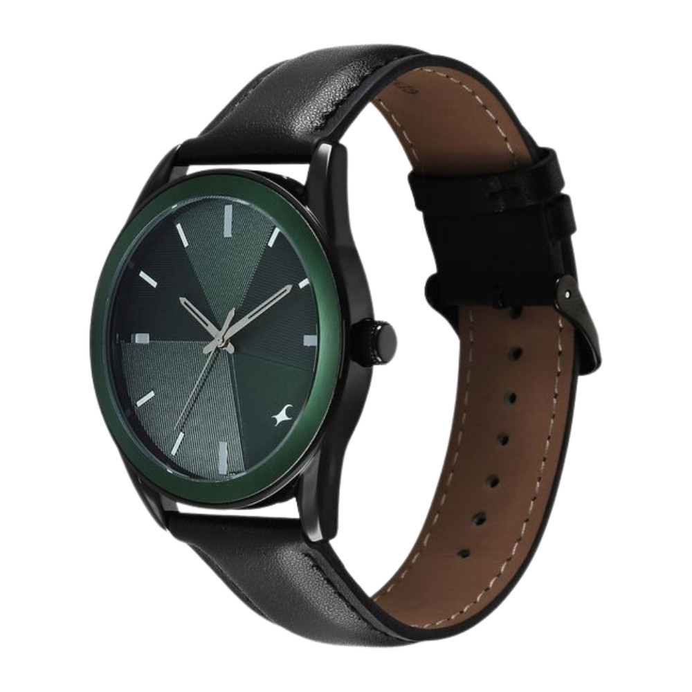 Fastrack Stunners Quartz Analog Green Dial Black Leather Strap Watch For Guys 38215KL01