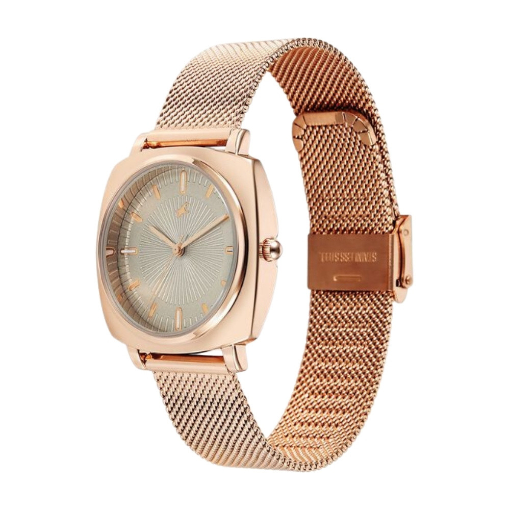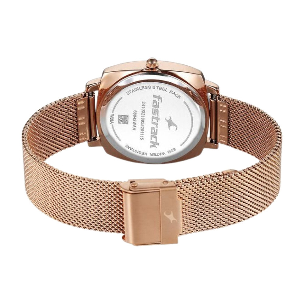 Fastrack Stunners Quartz Analog Green Dial Rose Gold Stainless Steel Strap Watch For Girls 68043WM03