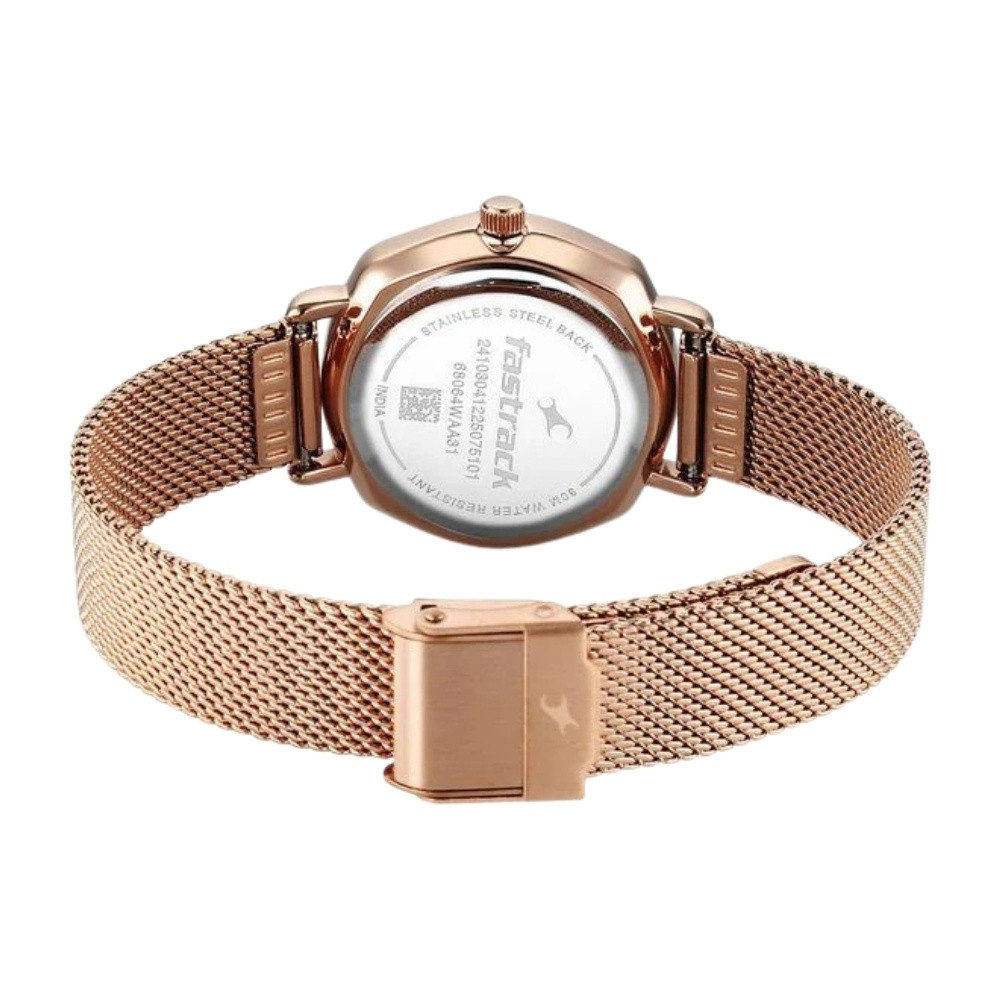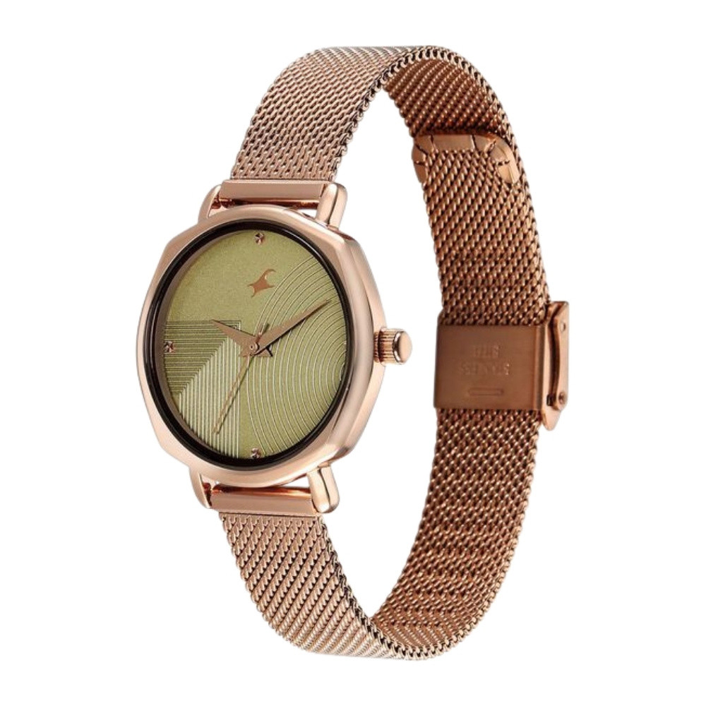 Fastrack Stunners Quartz Analog Green Dial Rose Gold Stainless Steel Strap Watch For Girls 68064WM03