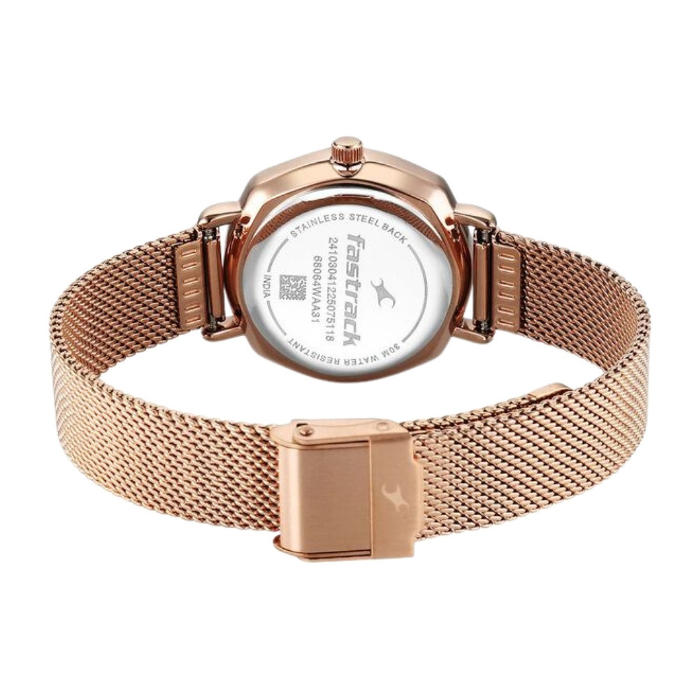 Fastrack Stunners Quartz Analog Purple Dial Rose Gold Stainless Steel Strap Watch For Girls 68064WM02