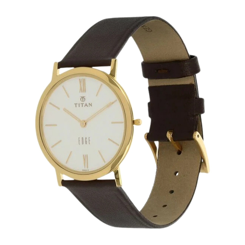 Titan Edge Quartz Analog White Dial Brown Leather Strap Watch For Men NT679YL01