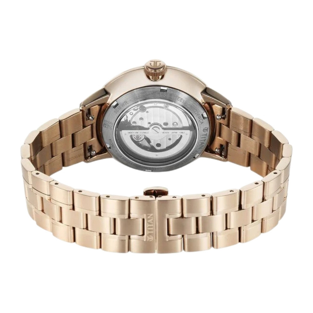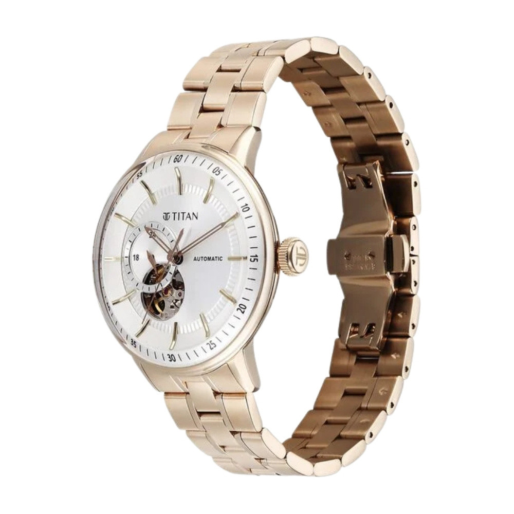 Titan Orbital Open Heart Automatic Analog with White Dial Carnation Gold Stainless Steel Strap Watch for Men 90226WM01