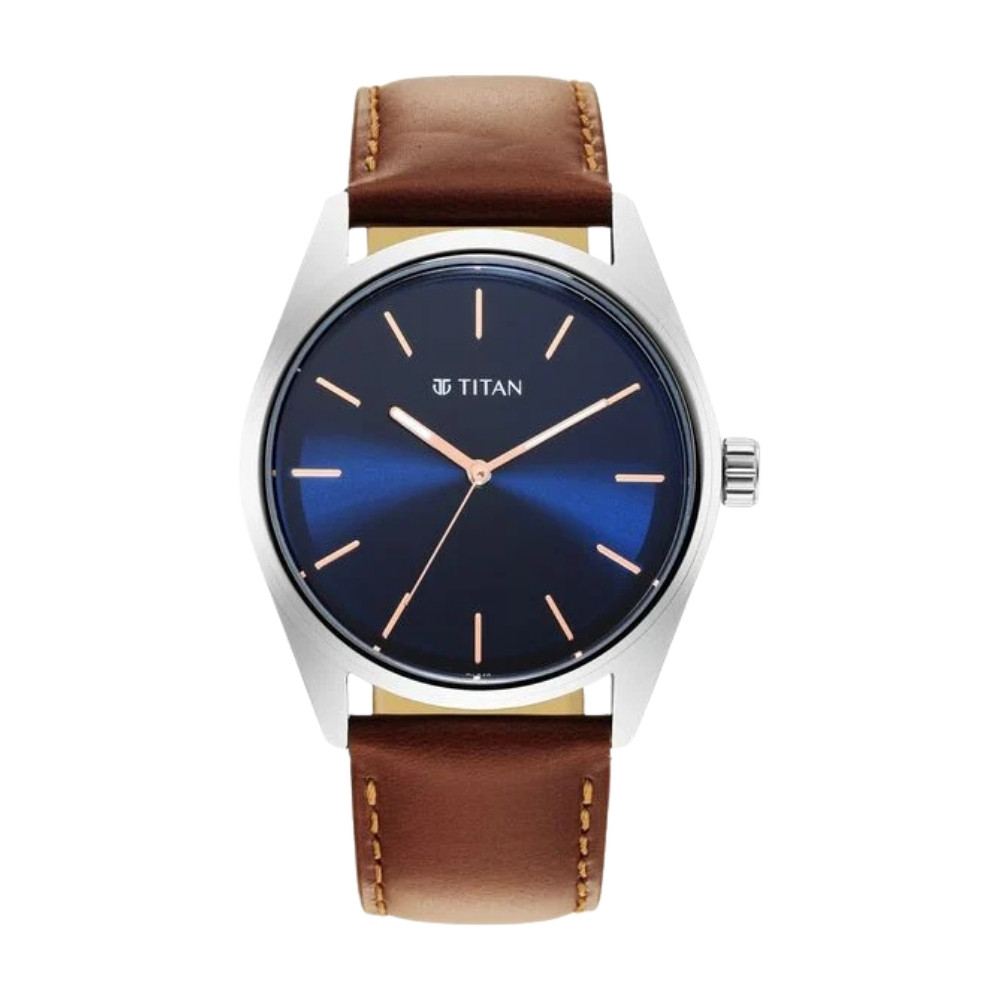 Titan Quartz Analog Blue Dial Leather Strap Watch for Men 1866SL01