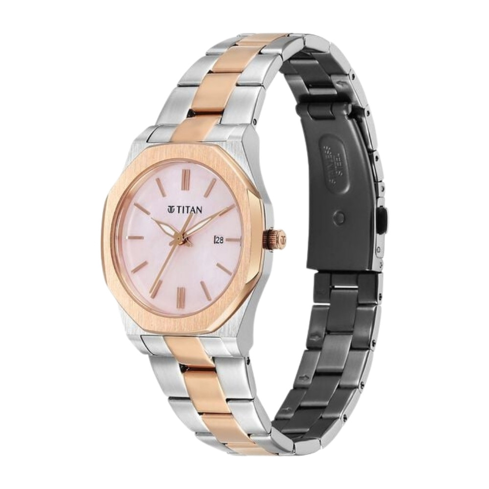 Titan Workday Wonders Quartz Analog with Date Pink Mother Of Pearl Dial Stainless Steel Strap Watch For Women 95295KM01
