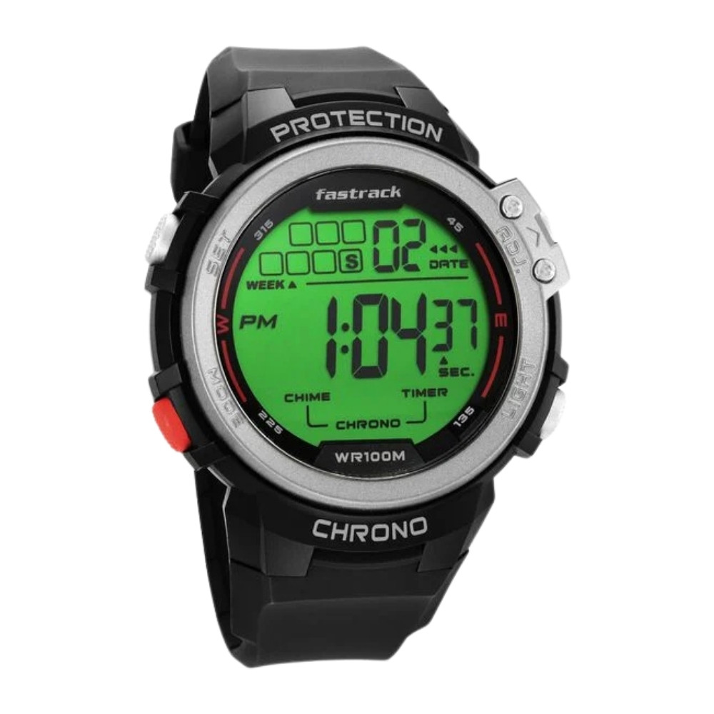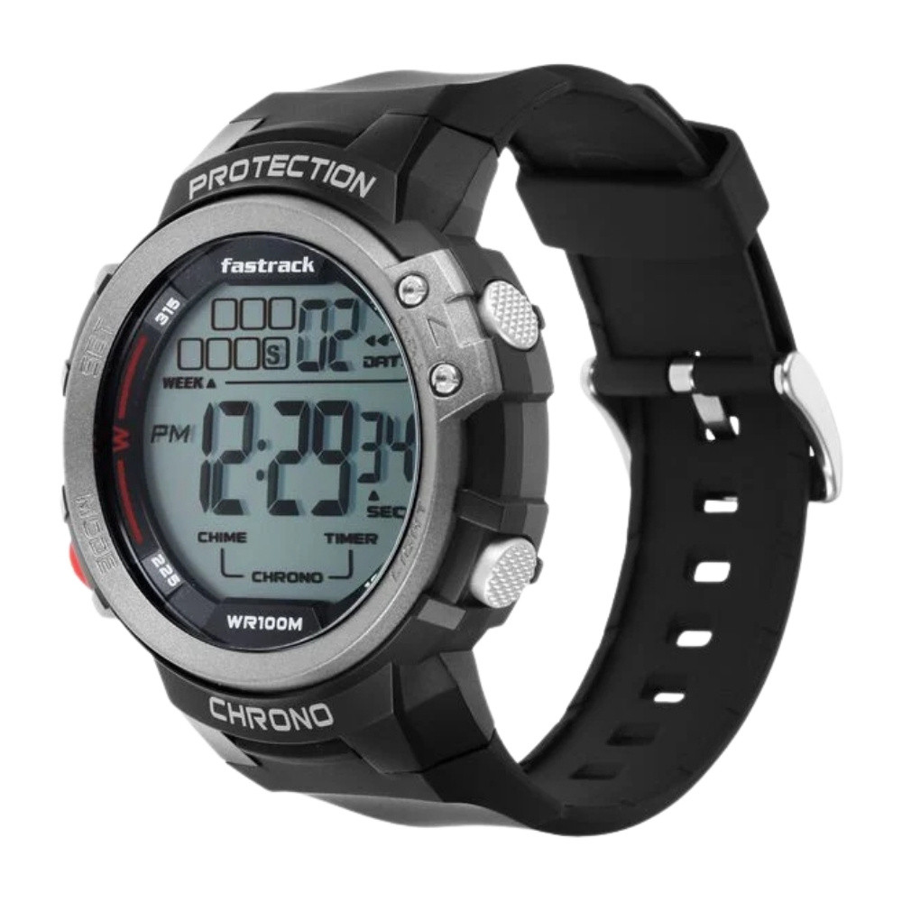 Fastrack Digital Dial Black Silicone Strap Watch For Guys (38068PP01)