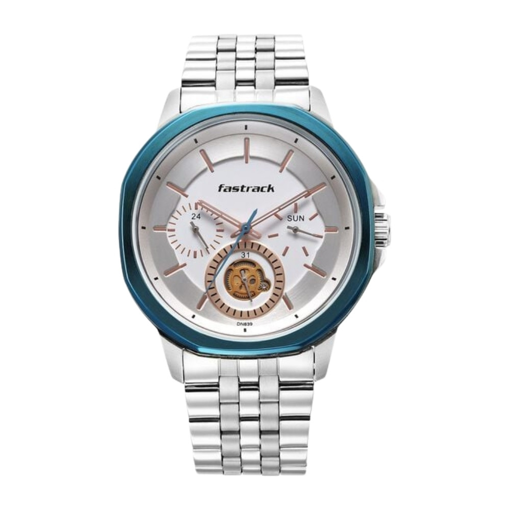 Fastrack Exuberant Quartz Multifunction Silver Dial Stainless Steel Strap Watch for Guys (3303KM01)