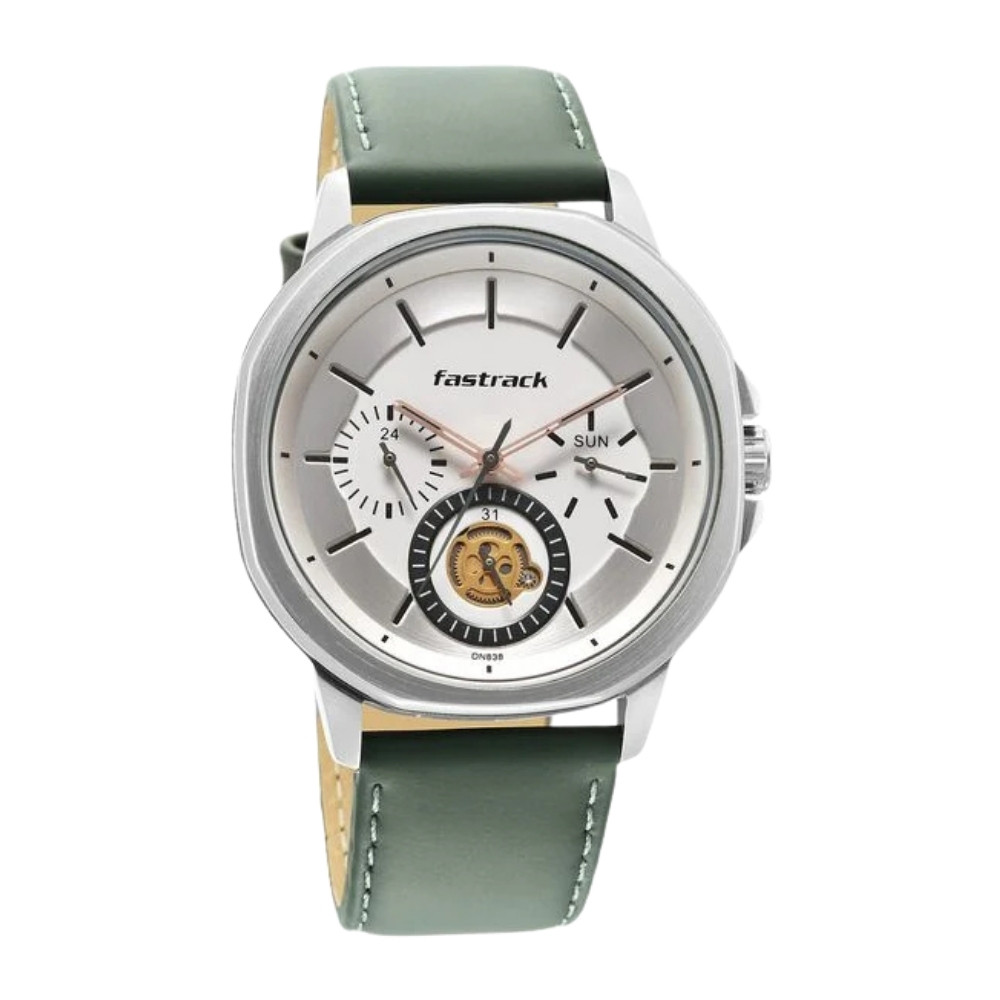 Fastrack Exuberant Quartz Multifunction White Dial Leather Strap Watch for Guys (3303SL02)