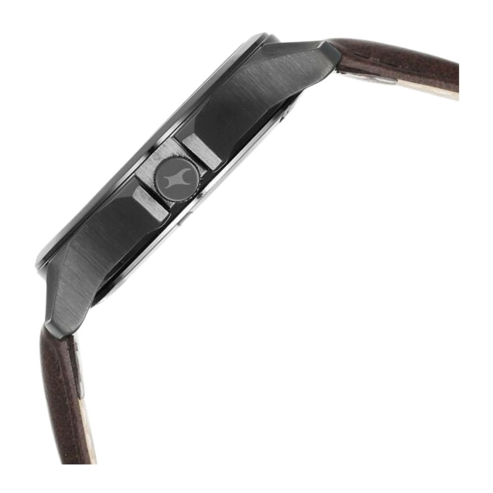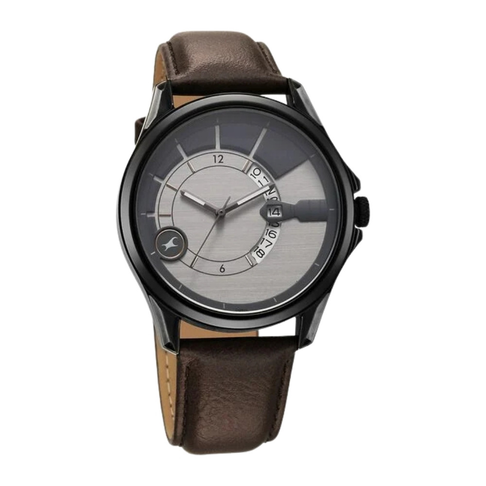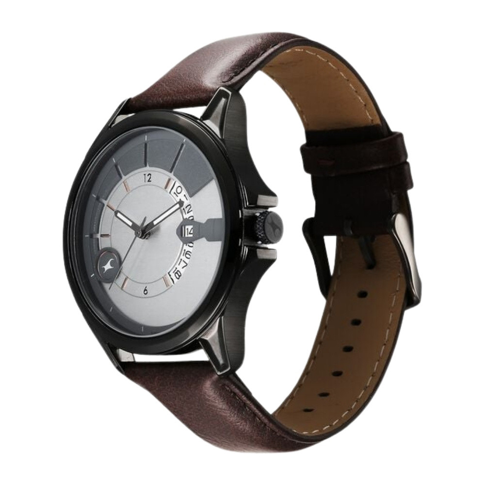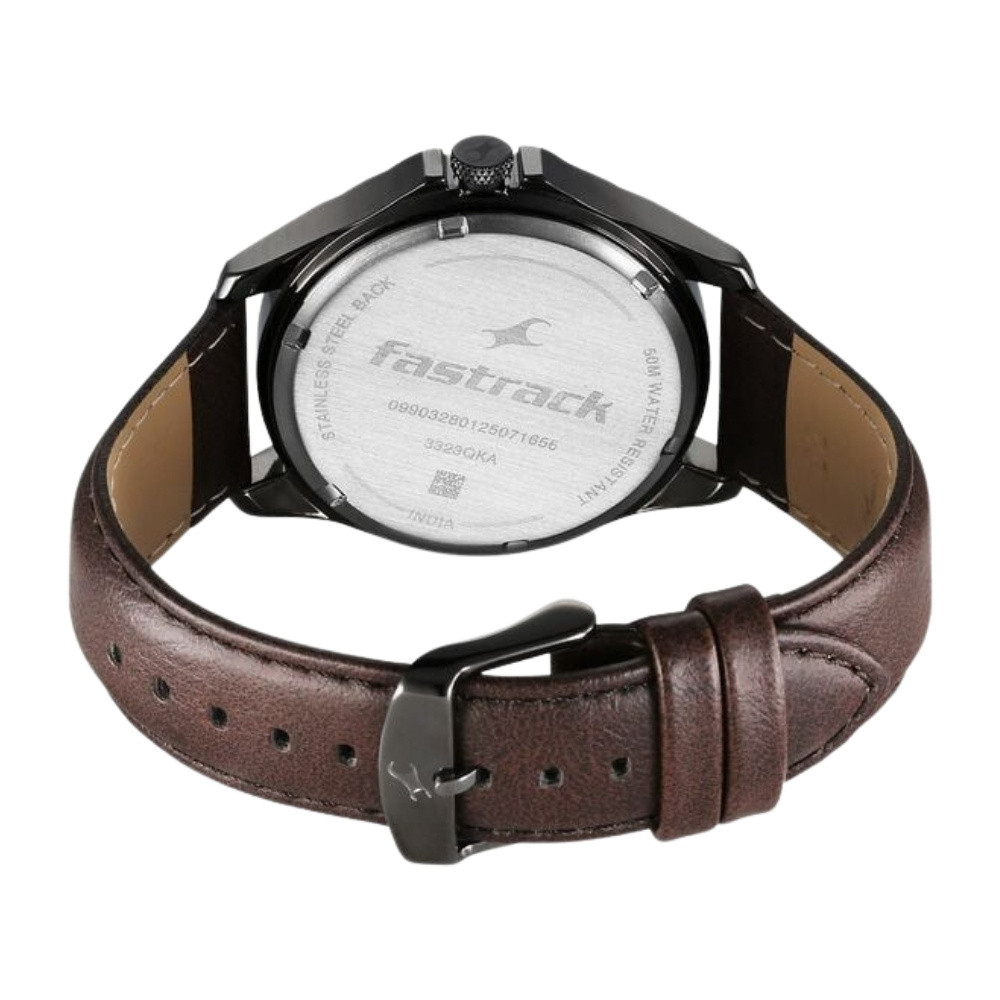 Fastrack Groove Quartz Analog with Date Two Toned Dial Brown Leather Strap Watch For Guys (3323QL01)