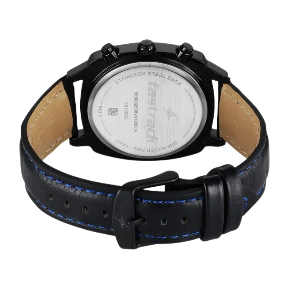 Fastrack Kronos Chronograph Black Dial Black Leather Strap Watch For Guys 3319NL02
