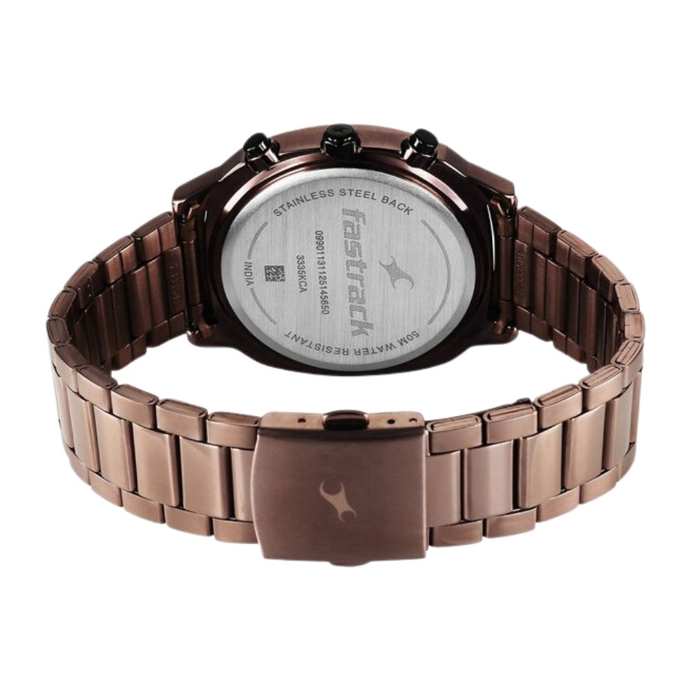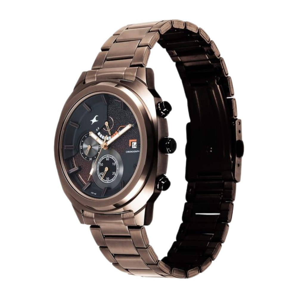 Fastrack Kronos Guys Chronograph Watch With Date Black Dial & Brown Stainless Steel Strap 3335KM01