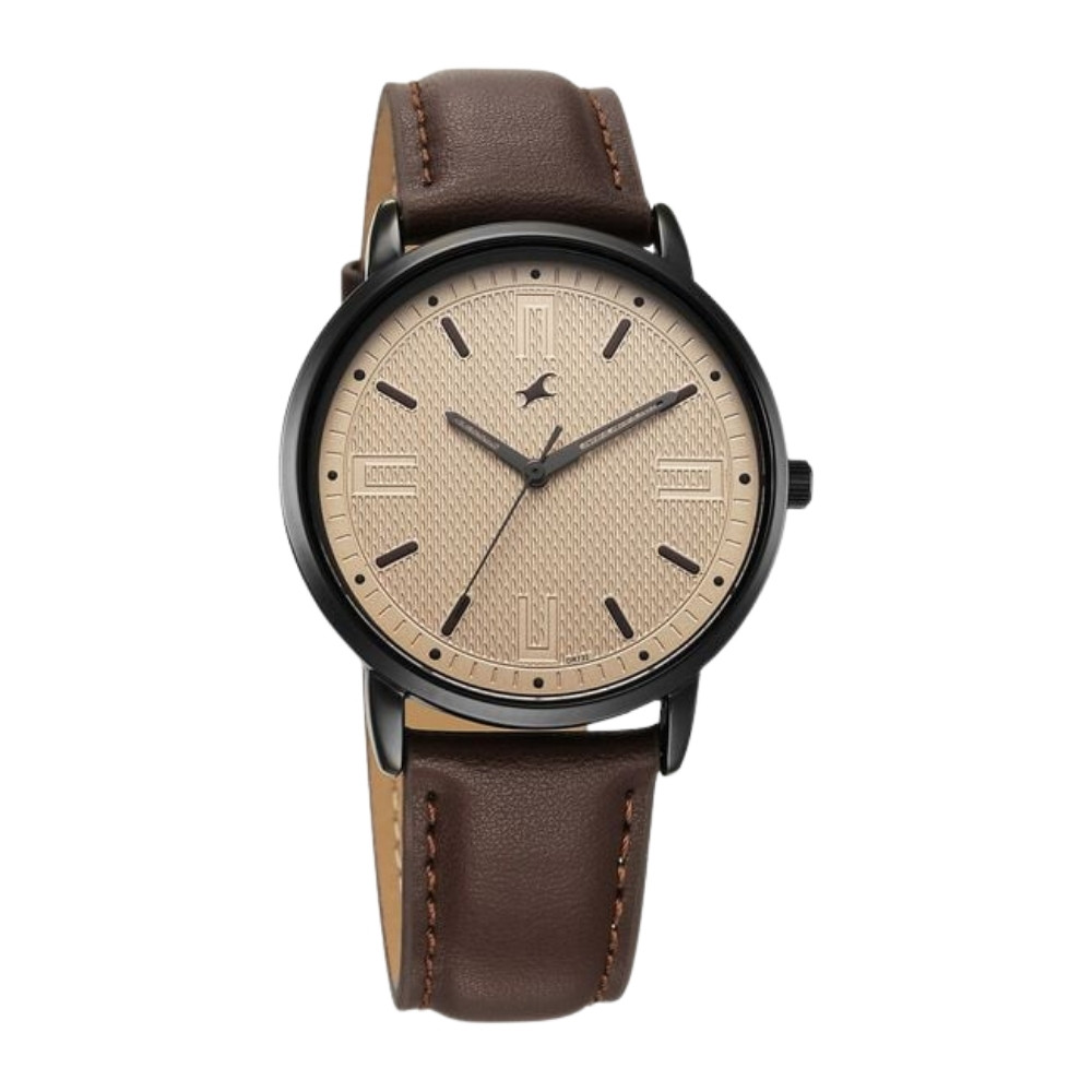 Fastrack Stunners X Quartz Analog Beige Dial Leather Strap Watch For Guys (38159NL02)