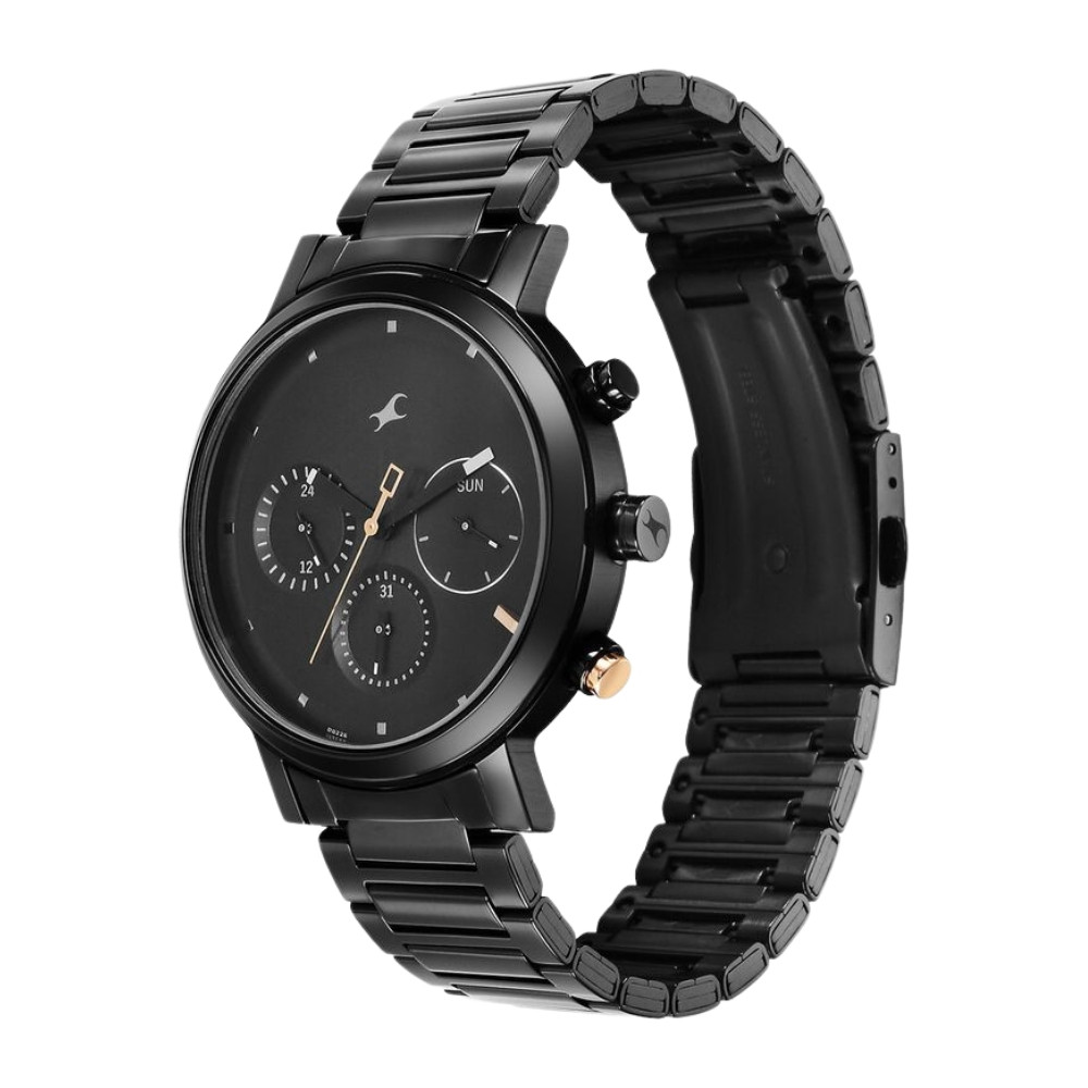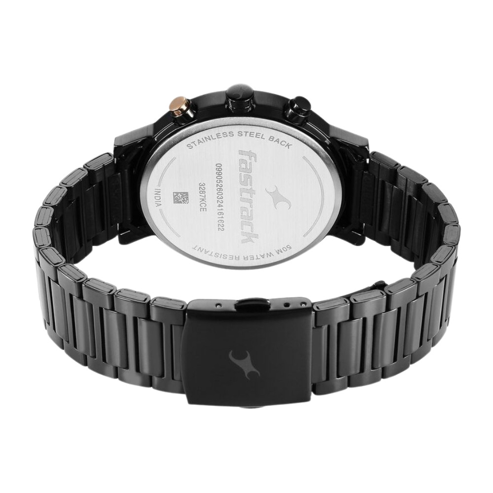 Fastrack Tick Tock Quartz Analog Black Dial With Black Stainless steel Strap Watch for Guys (3287KM06)