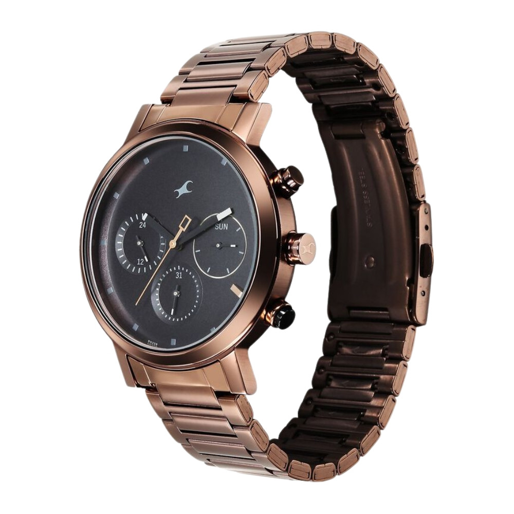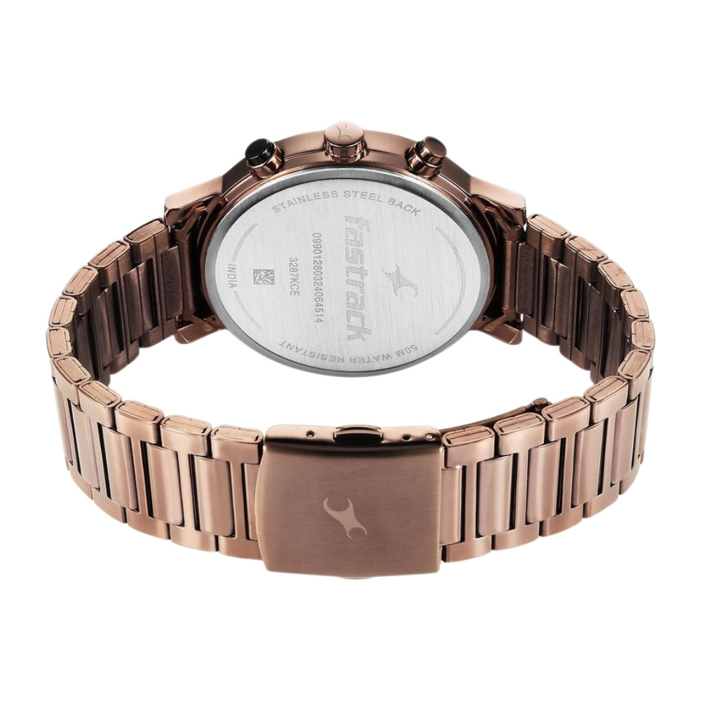 Fastrack Tick Tock Quartz Analog Black Dial With Brown Stainless steel Strap Watch for Guys (3287KM07)