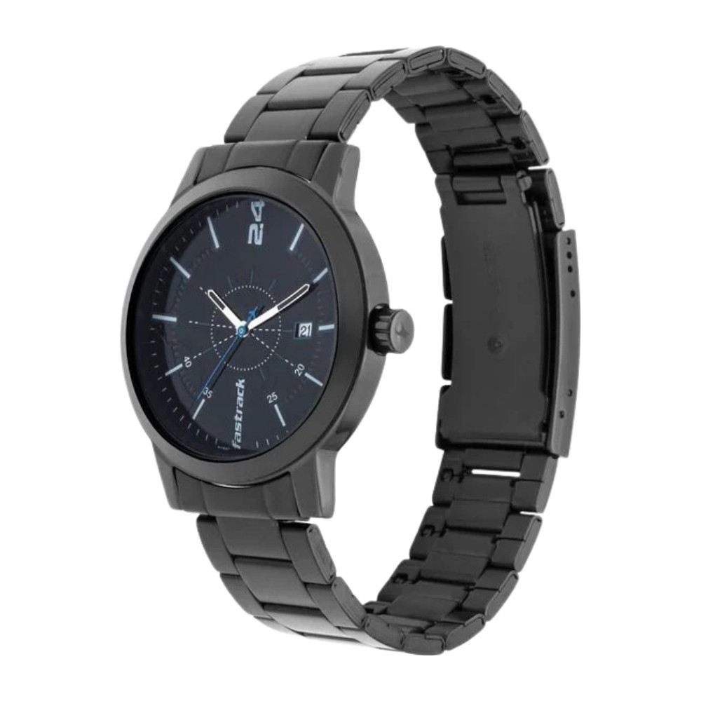 Fastrack Tripster Quartz Analog with Date Black Dial Stainless Steel Strap Watch for Guys (3245NM01)