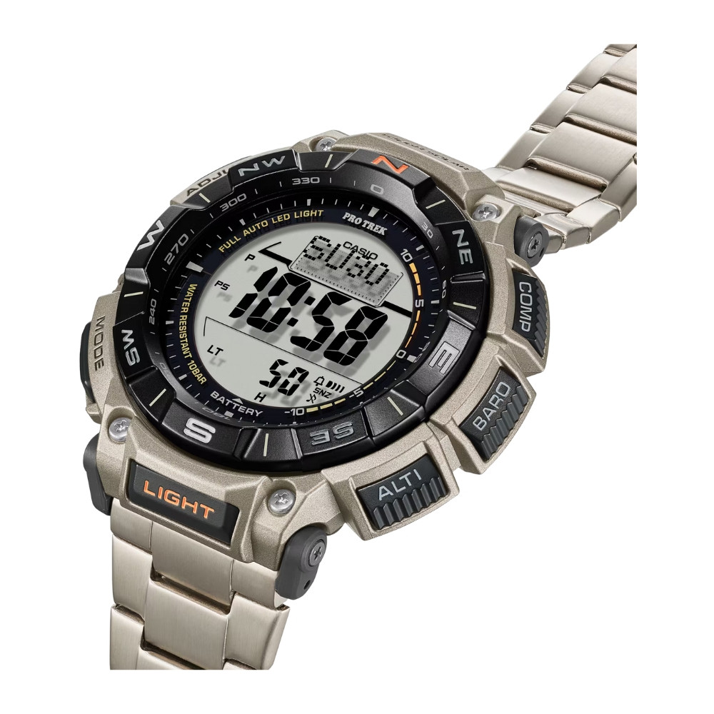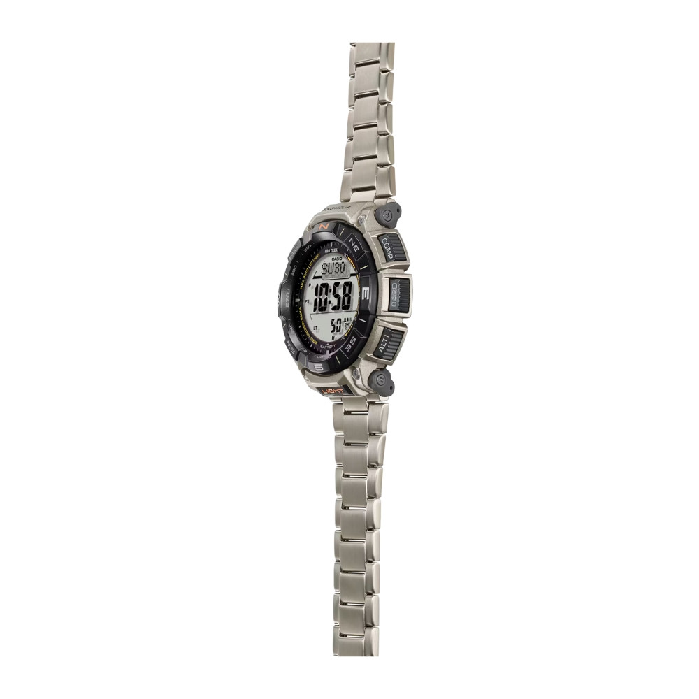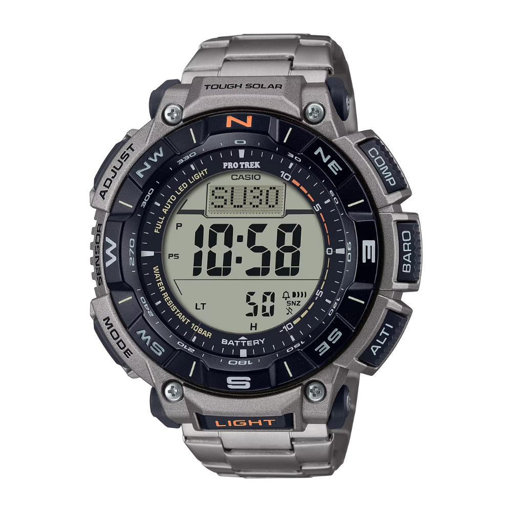 Key Features: World time, Sunrise/sunset display, Stopwatch, Timer, Alarm/hourly time signal, Light, Calendar, Mute feature, Energy saving feature, Battery display/alert, Run time, Accuracy