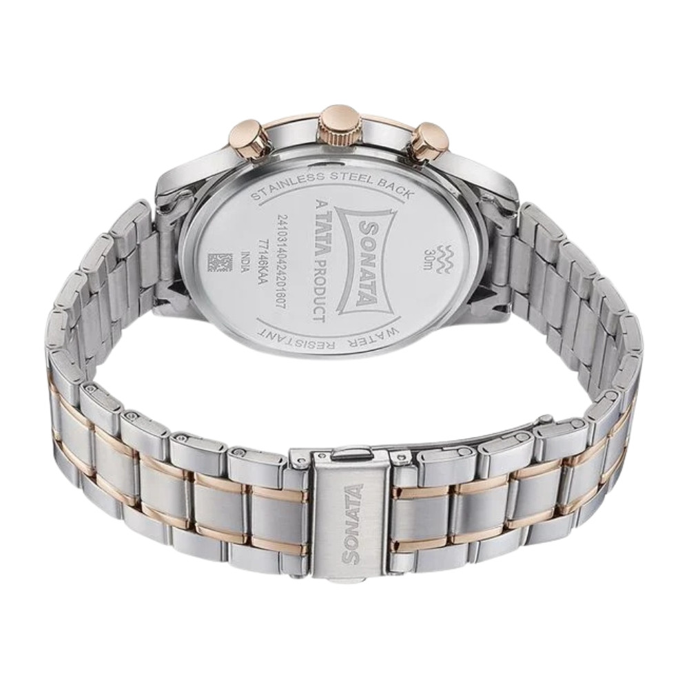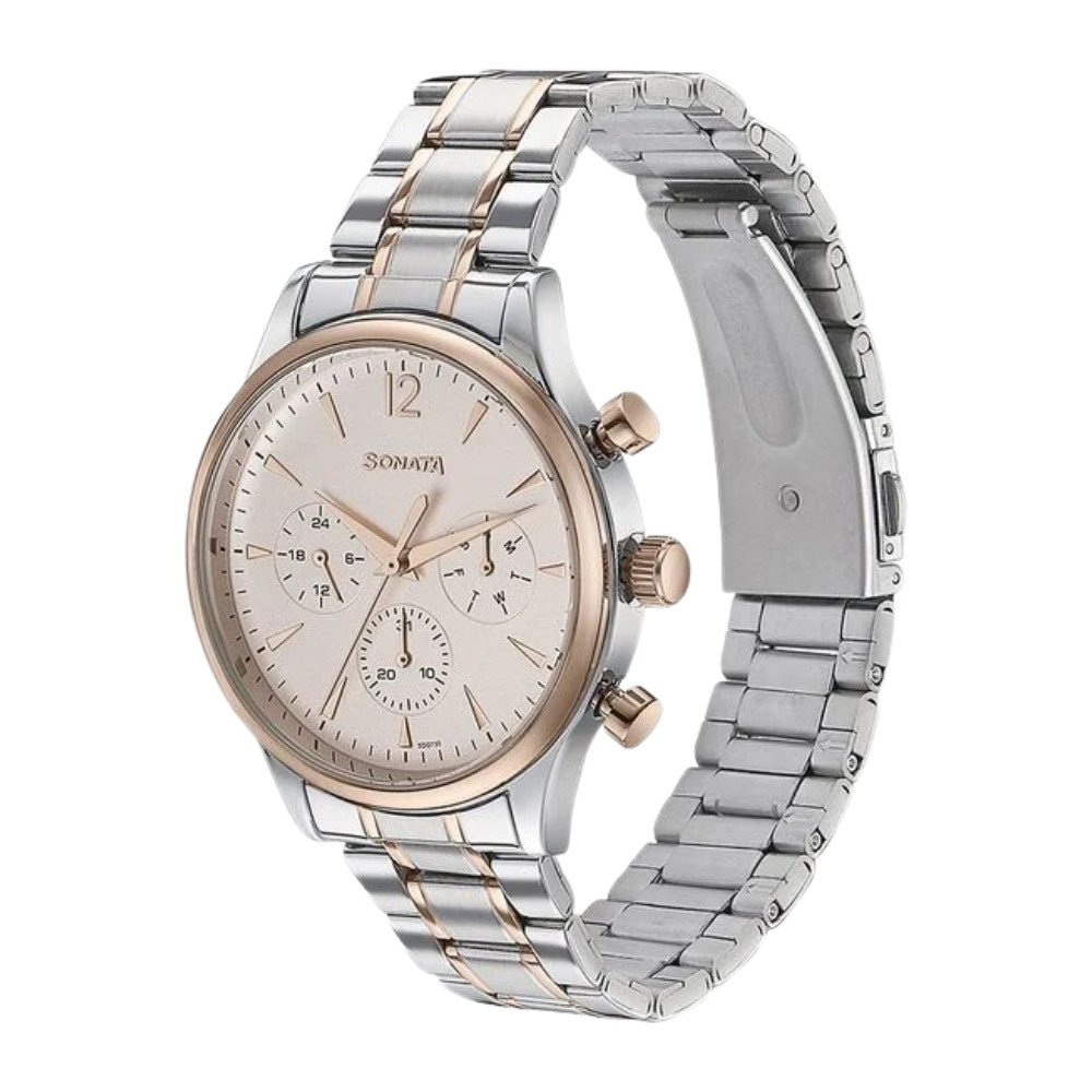 Sonata Quartz Multifunction Pink Dial Two Toned Stainless Steel Strap Watch For Men 77146KM01