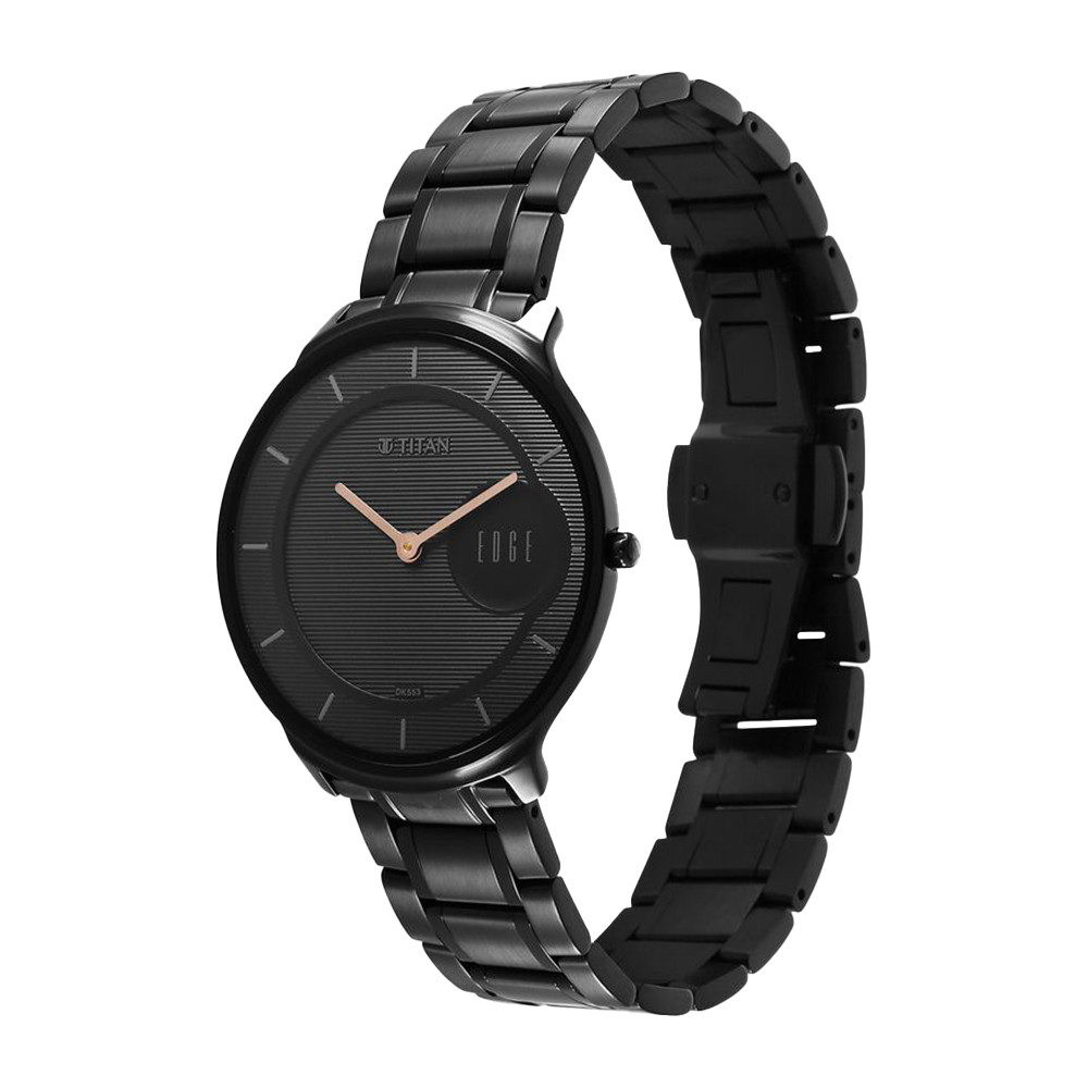 Titan Edge Metal Black Dial Stainless Steel Strap Watch for Men NR1843NM03