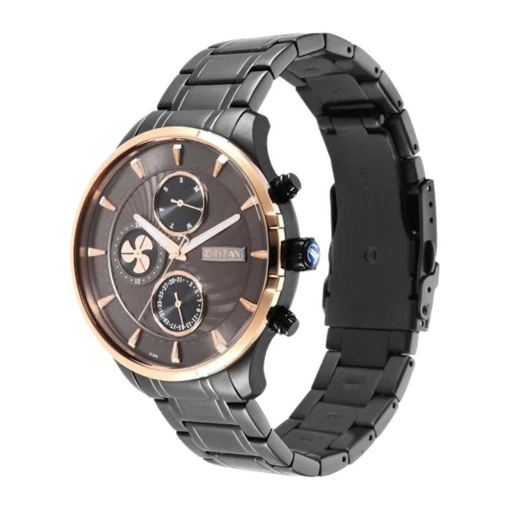 Titan Maritime Anthracite Dial Quartz Multifunction Stainless Steel Strap watch for Men NS1873KM01
