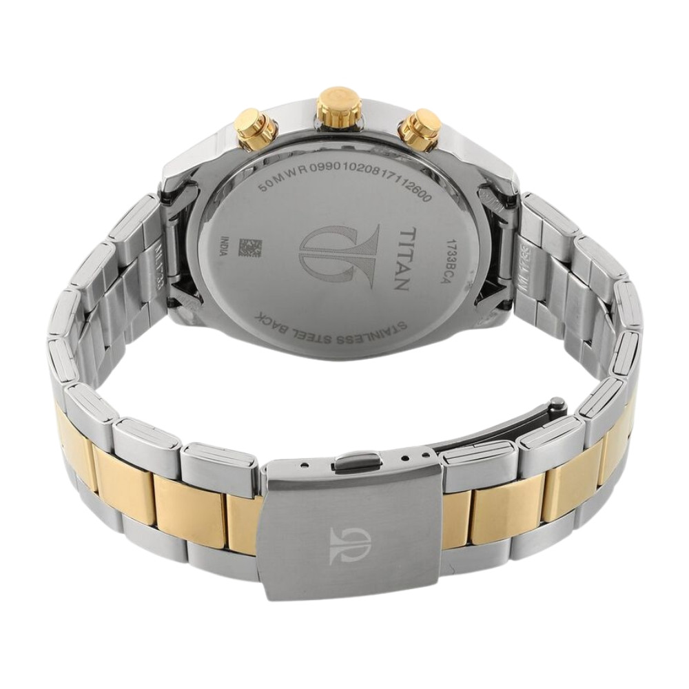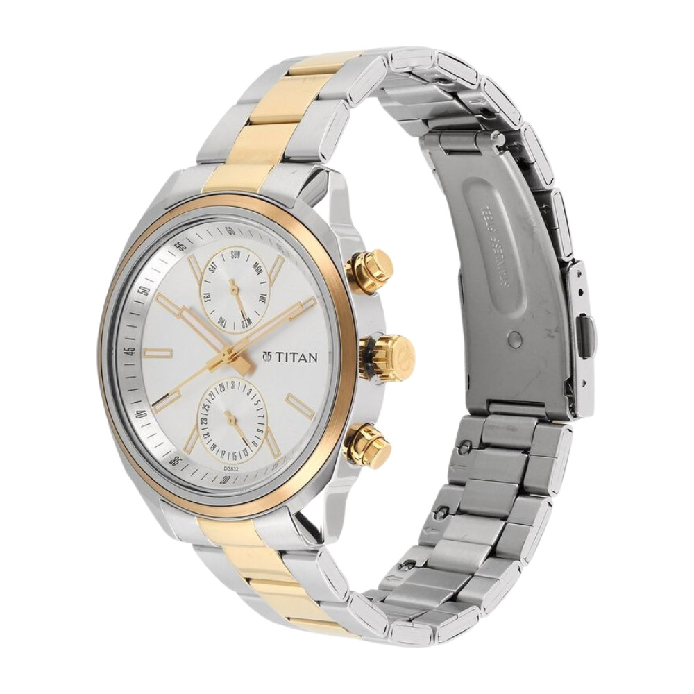 Model: Titan Men's Metropolitan Luxe: Multifunction Silver Dial with Two-Tone Stainless Steel Bracelet Watch NR1733BM01
