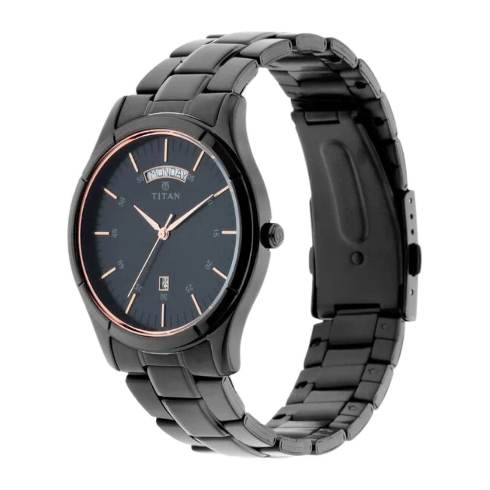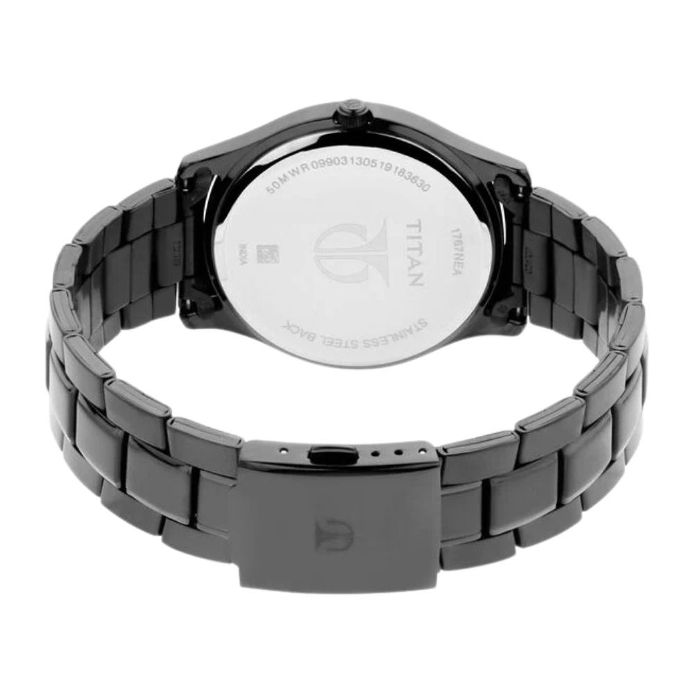 Titan Quartz Analog with Day and Date Black Dial Black Stainless Steel Strap Watch For Men (1767NM01)