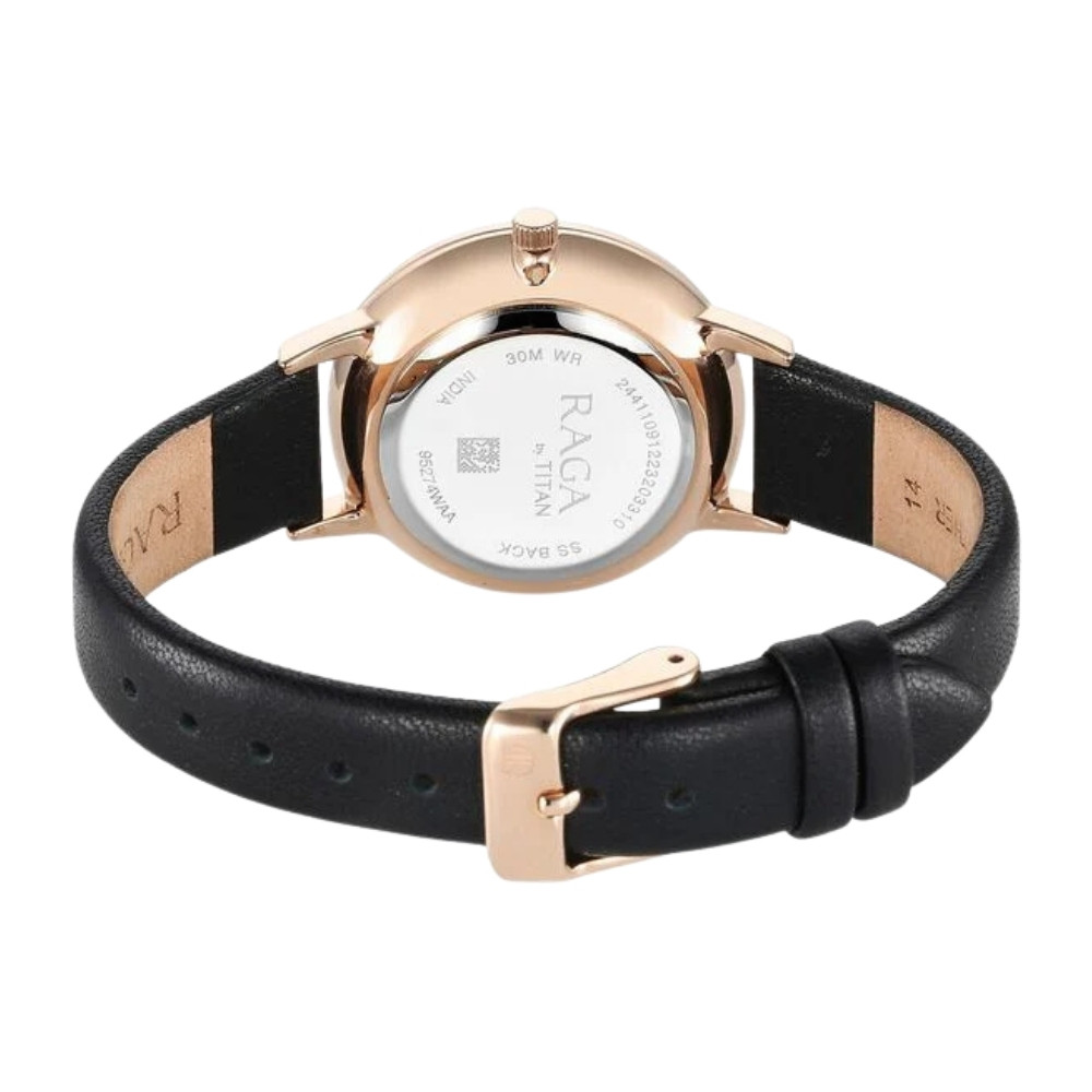 Titan Raga Showstopper Quartz Analog Mother Of Pearl Dial Leather Strap Watch for Women 95274WL02