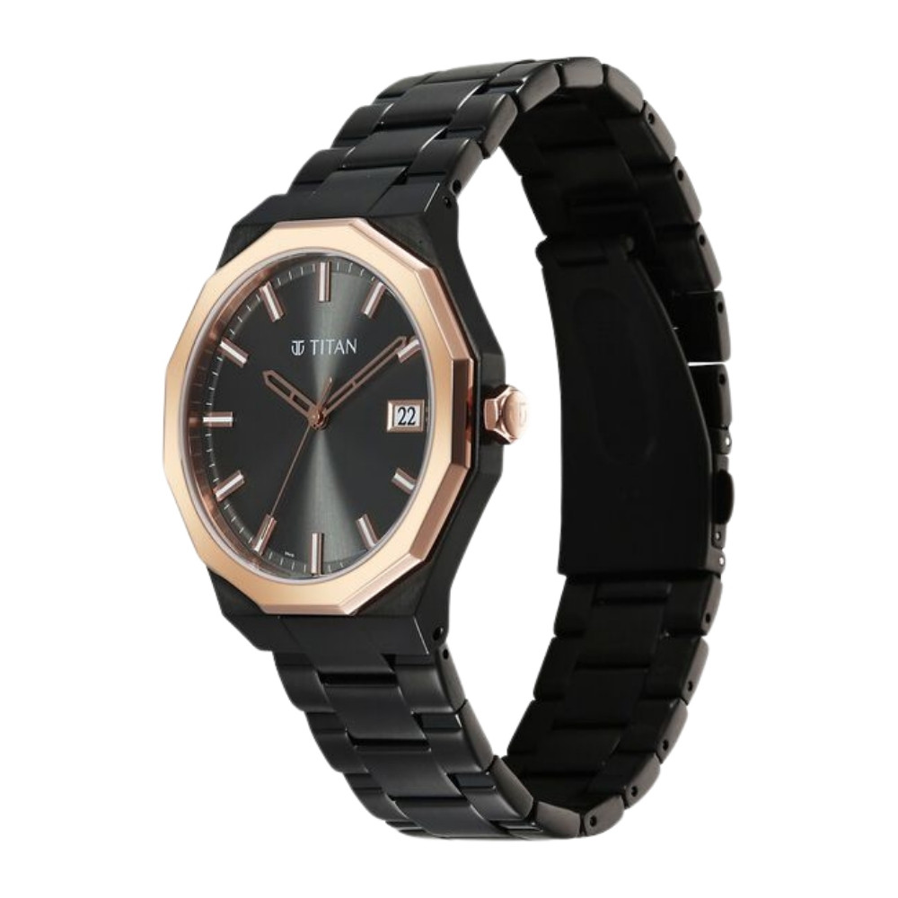 Titan Regalia Dodecagon Quartz Analog with Date Grey Dial Black Stainless Steel Strap Watch For Men (90212KM02)