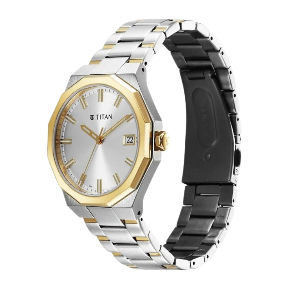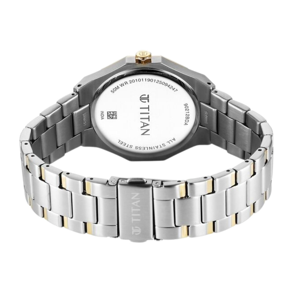 Titan Regalia Dodecagon Quartz Analog with Date Silver Dial Two Toned Stainless Steel Strap Watch For Men (90212BM01)