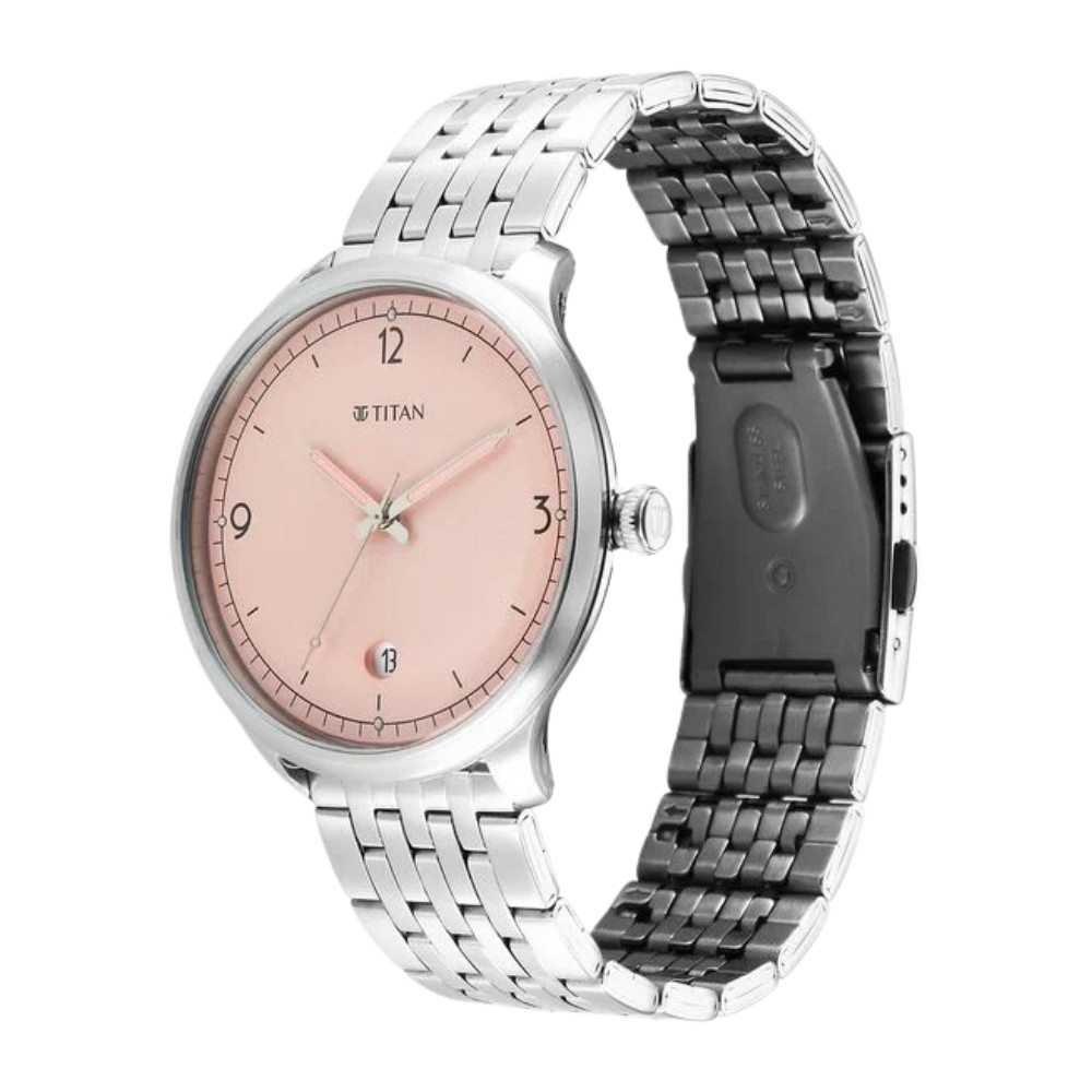 Titan Timeless Treasures Quartz Analog with Date Pink Dial With Silver Color Stainless Steel Strap Watch For Men 10023SM01
